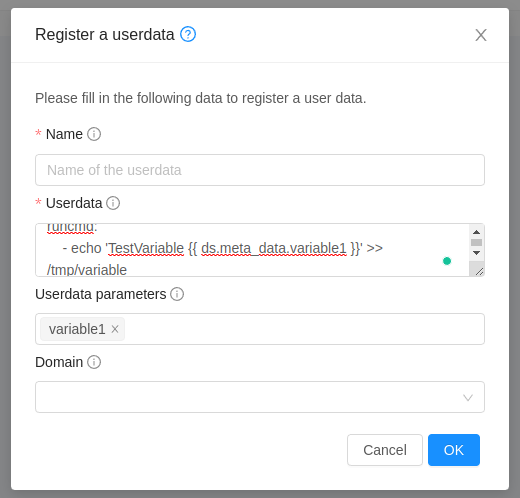 Deploy an instance with this user-data either by providing the UUID of the registerd userdata or by providing base64 encoded userdata: